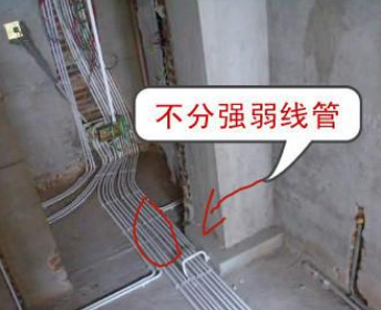 施工过程中应该按照《室内装饰施工标准》将强线管为红管和弱线管为蓝管进行区分,避免今后维修过程中难以分辨强弱线管。因为使用时间久了,如果出现线路老化,或者线管破损,需要拆墙拆地维修,那么因时间过长且维修人员不一定是原来施工的电工师傅,那么难以辨别是哪根管是强弱线管,往往会多拆地砖或者拆多跟管进行辨别,那将会增加维修成本和难度。