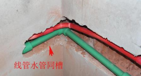 如果水管出现渗漏或者热水管表面产生冷凝水,浸泡到电线,受潮电线容易发生短路,导致漏电。施工时,预埋水管与线管时,应该将水管和电线分槽预埋,防止电线受潮。