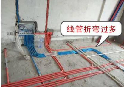 在很多水电装修中,往往为了美观,以达到横平竖直的标准而不注意线管拐角折弯的数量。像有些四室两厅150平左右的大房,因为配电箱离主卧比较远,而又不能直线走过,所以很多水电工在施工的时候往往会拐很多个弯布管。其实这种做法是错误的。单独一路线,拐角超过三个一组四平方的线已经很难拉过去了,如果距离太远,正常情况下根本拉不懂,只能硬拉硬扯,最终有可能导致电线破损或者是死线,留下安全隐患。